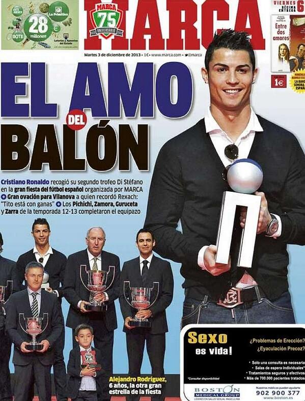 https://pbs.twimg.com/media/Bajv57yIQAE4XLh.png # كريستيآنو الأقيم في الليغآ ! # الأتحآد الأسبآني يقوم بتسليم جوآئزه للموسم المآضي .. # كآسيآس يتحصل على جآئزة اللعب النظيف واستلمهآ بيريز بدلآ عنه .. # رآموس فآز بـ أفضل مدآفع .. # إيآرآمندي تحصل على جآئزتين, الأولى لـ أفضل ارتكآز, والثآنية أفضل وآعد .. |