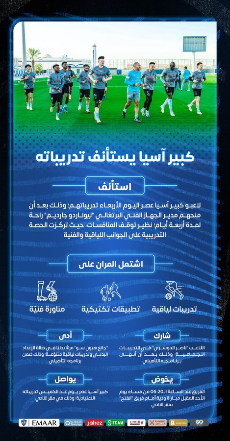 »» يخوض كبير آسيا مساء الأحد المقبل مباراة ودية أمام نظيره الفتح. https://pbs.twimg.com/media/FKCqwWjX...jpg&name=small |