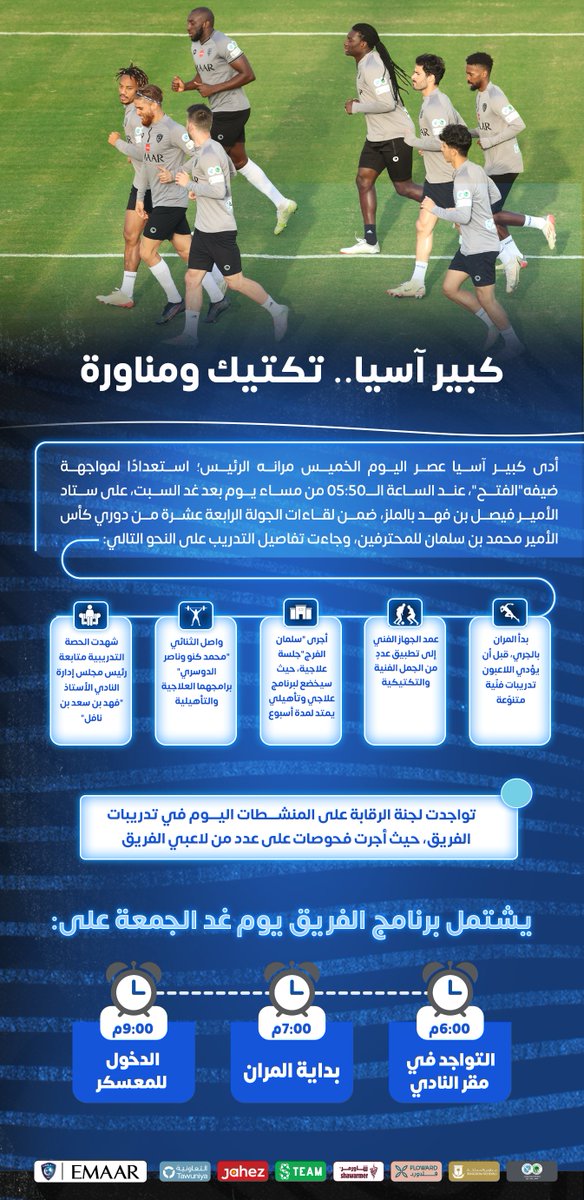 . https://i.imgur.com/NWpgBUc.gif يجري مساء اليوم سلمان الفرج فحص طبي على موضع إصابته بالورك. https://pbs.twimg.com/media/FHOontbX...jpg&name=small https://i.imgur.com/NWpgBUc.gif جاهزية سالم الدوسري لمُباراة الفتح بعد مشاركته في تدريبات الفريق الجماعية. https://pbs.twimg.com/media/FHOoFEmX...jpg&name=small |
