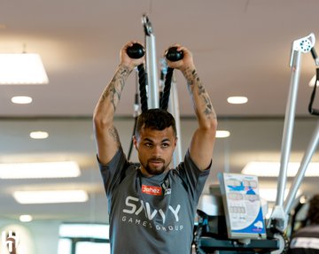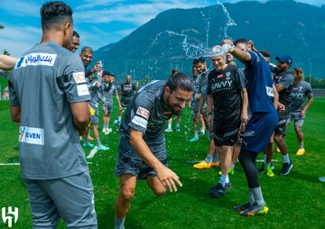 سالم ينفذ تدريبات خاصة في صالة الإعداد البدني خلال المعسكر لتقوية عضلات جسمه