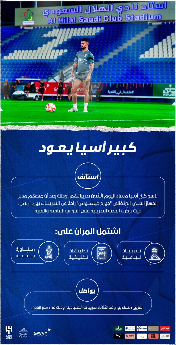 منح جيسوس لاعبي الهلال راحة عن تدريبات الغد. |