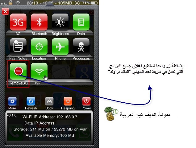 وتستمر الاضافات المميزة من البرنامج الرائع SBsettings .. وهذه المرة سوف نطلعكم على اداة مفيدة تمكنكم من اغلاق جميع البرامج التي تعمل في شريط "تعدد المهام" المالتي تاسكن او الباك قراوند، بضغطة زر واحدة.